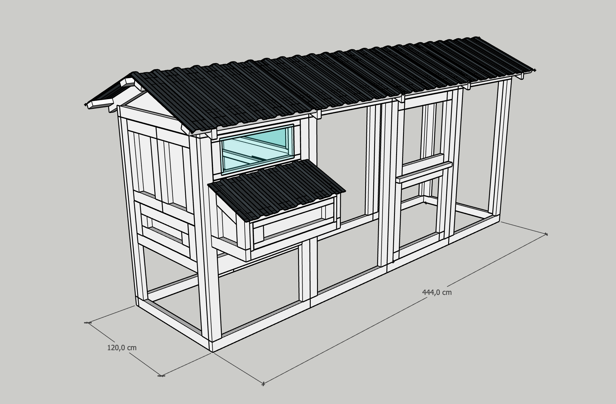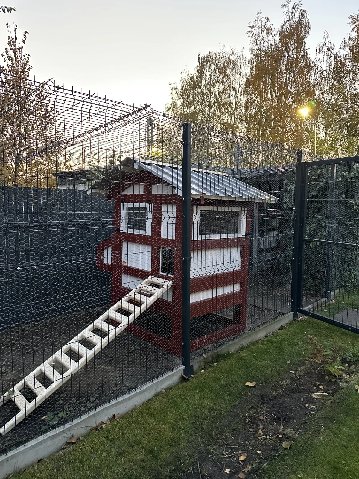 Taki zabieg odbije się oczywiście na konieczności częstszego sprzątania samego domku (częściej niż 1x/rok) i opcją montażu drzwi automatycznych umożliwiających wyjście kur poza zintegrowaną wolierę.