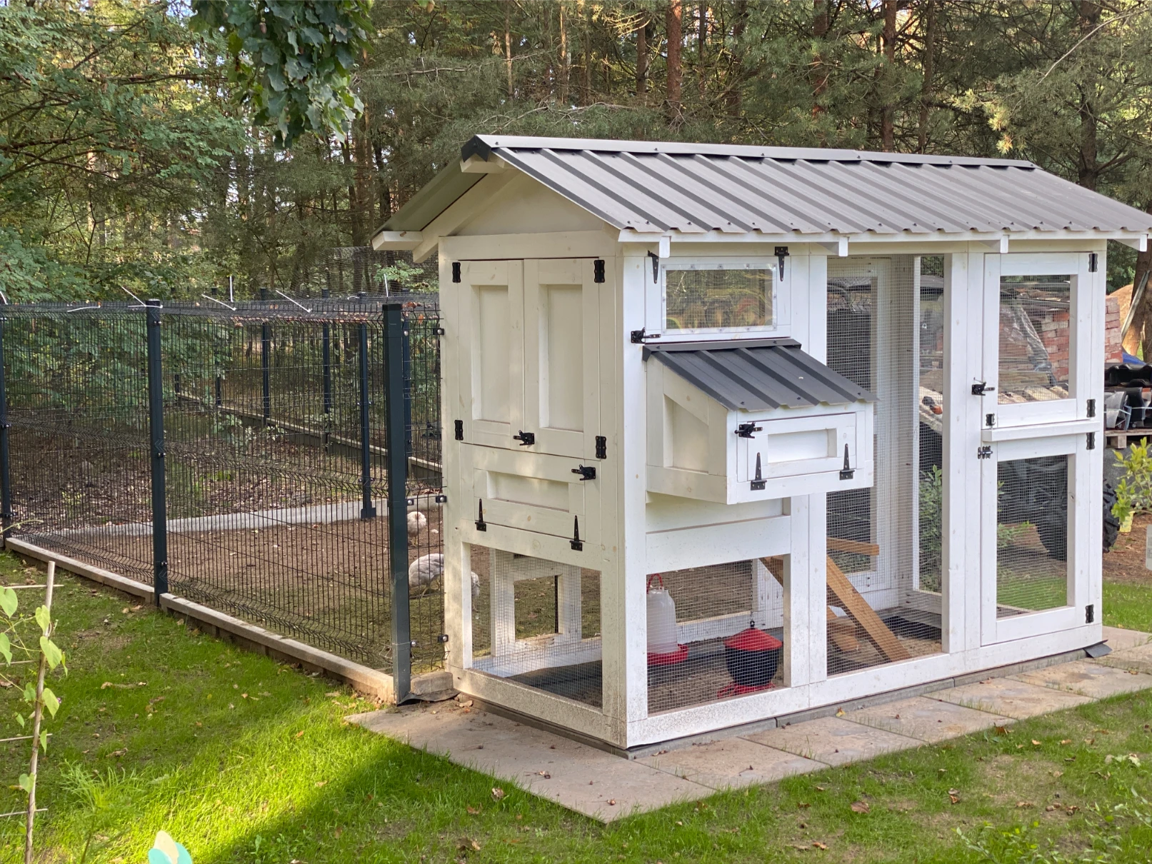 Happy Kura PICO to najmniejszy model w naszej ofercie. Dzięki bardzo kompaktowym wymiarom zmieści się w każdy zakątek Twojego ogrodu. Dedykowany jest do przydomowych ogródków miejskich, nawet tych najmniejszych. Wariant podstawowy (o długości 2,7m) zalecany jest na 3 kury, jednak przy zapewnieniu dodatkowego wolnego wybiegu (np. zewnętrzna, niezadaszona woliera) z powodzeniem zmieści nawet 6 kur. Taki zabieg odbije się oczywiście na konieczności częstszego sprzątania samego domku (częściej niż 1x/rok) i opcją montażu drzwi automatycznych umożliwiających wyjście kur poza zintegrowaną wolierę.